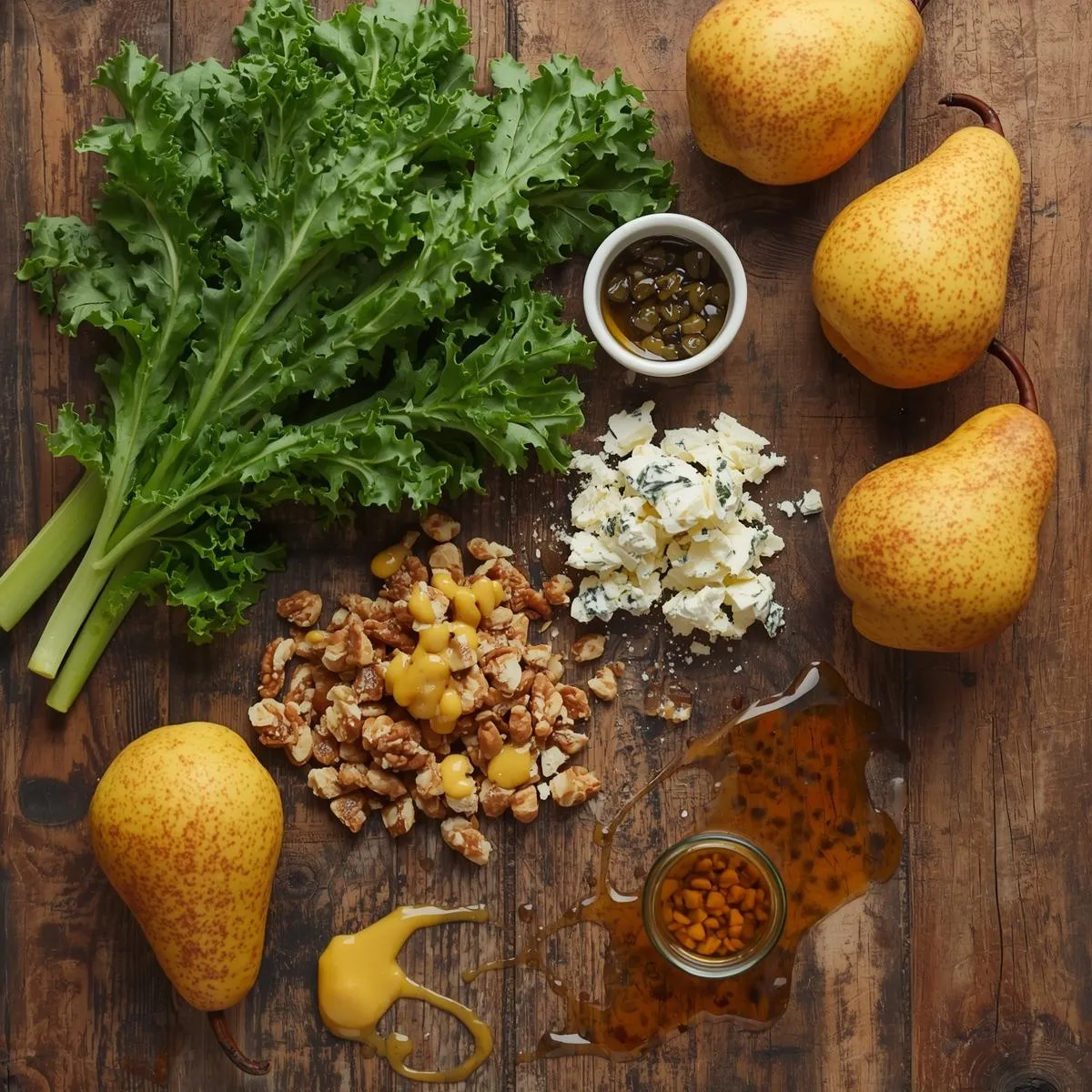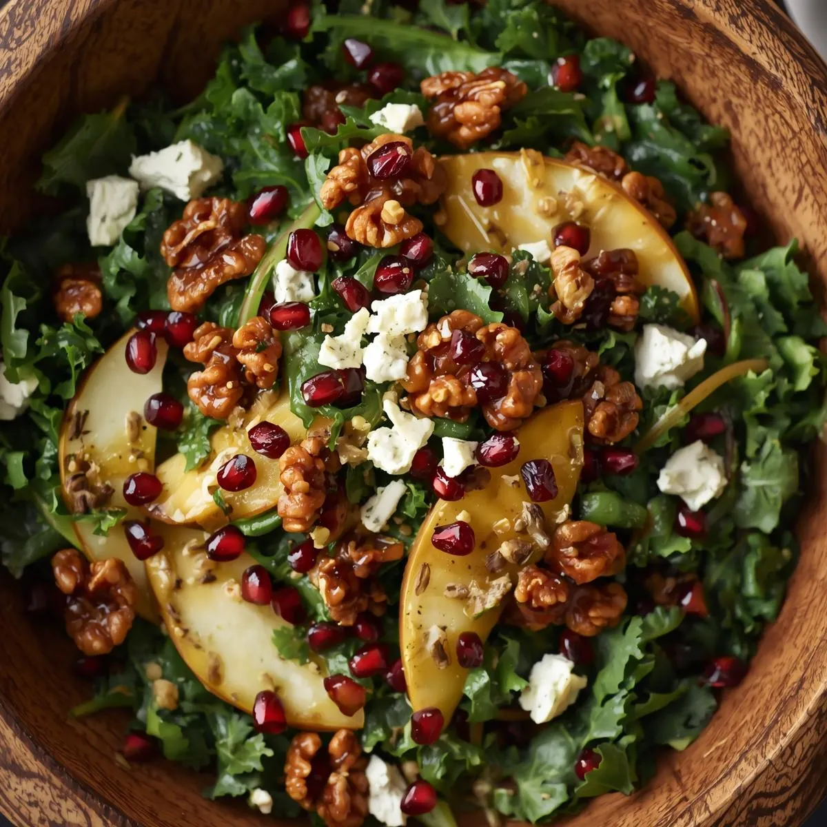 Autumn Kale Salad with Pears, Blue Cheese & Candied Walnuts