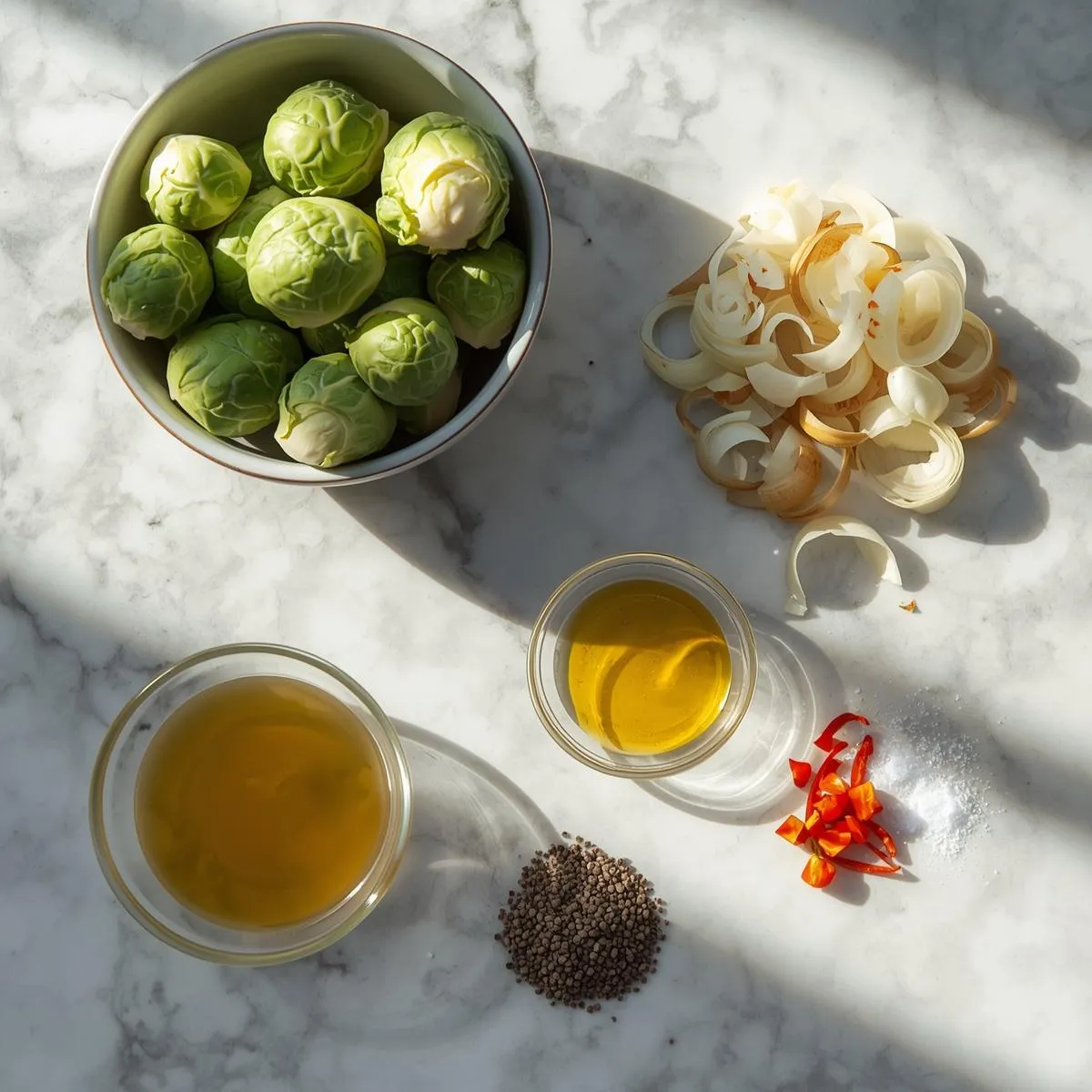 - 1 lb Brussels sprouts, trimmed and halved