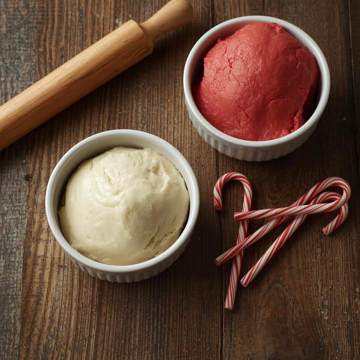 - Divide & color – Split dough in half. Tint one half red with food coloring, leave the other plain. Chill for 30 minutes.