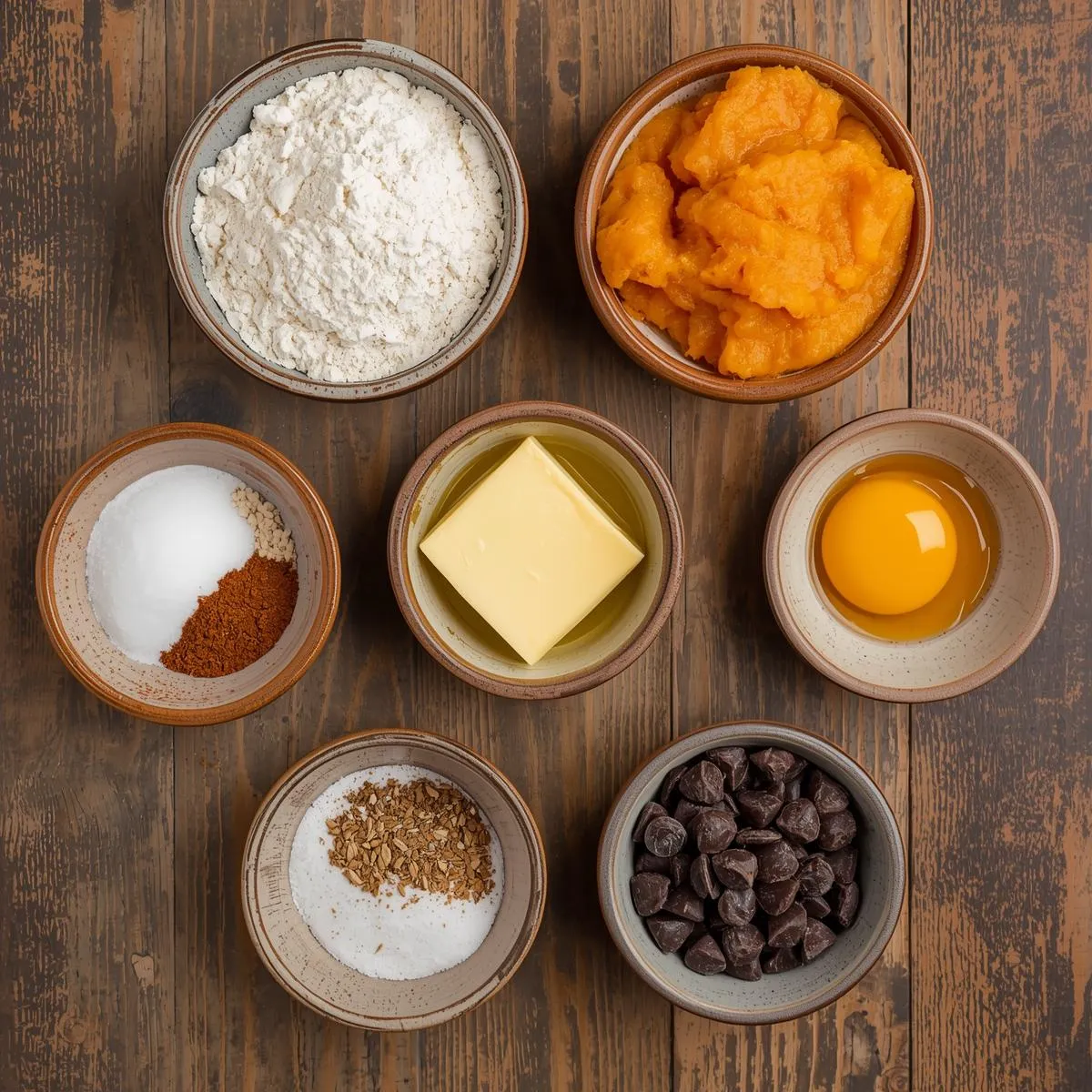 - Mix wet ingredients: Whisk melted butter, brown sugar, granulated sugar, pumpkin, egg yolk, and vanilla until smooth.