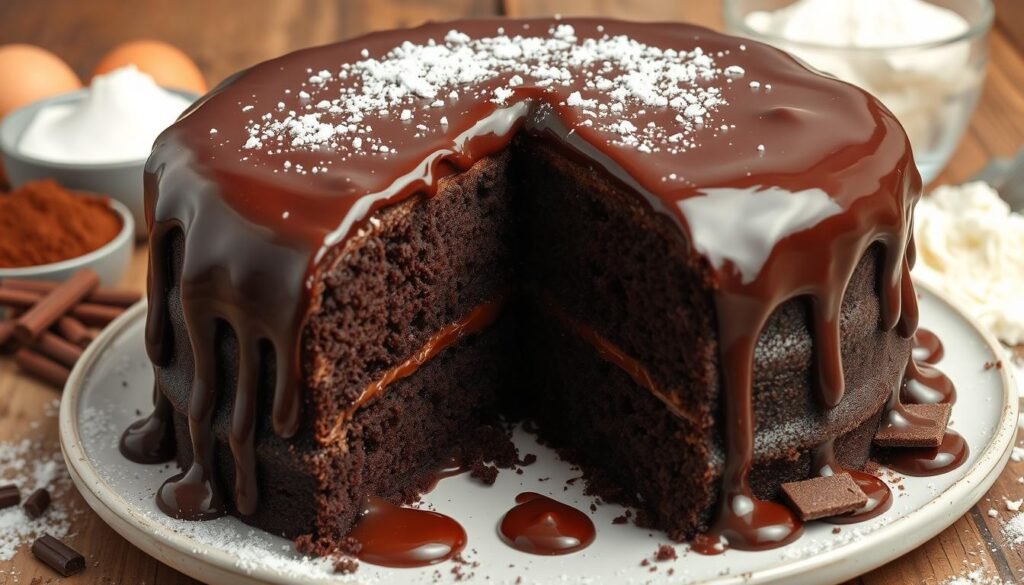 Imagine the sweet scent of chocolate in your kitchen. It brings back memories of childhood and magical tales. The chocolate cake from Matilda recipe captures this enchantment. It allows you to bake a dessert that’s not just tasty, but also nostalgic.