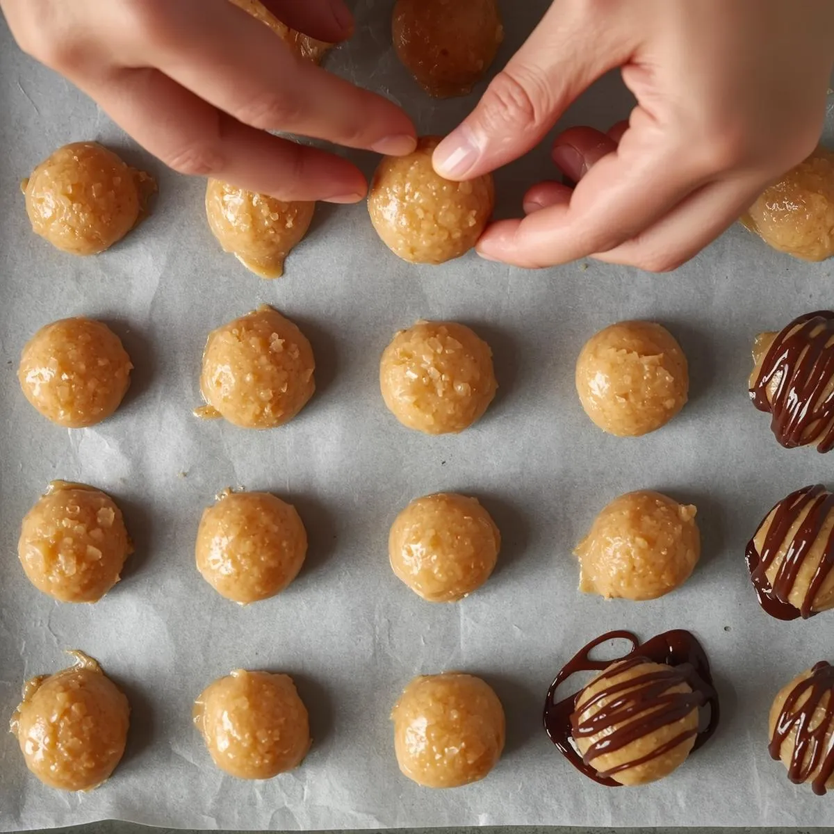 - Shape balls – Roll mixture into 1-inch balls and place on a parchment-lined tray.