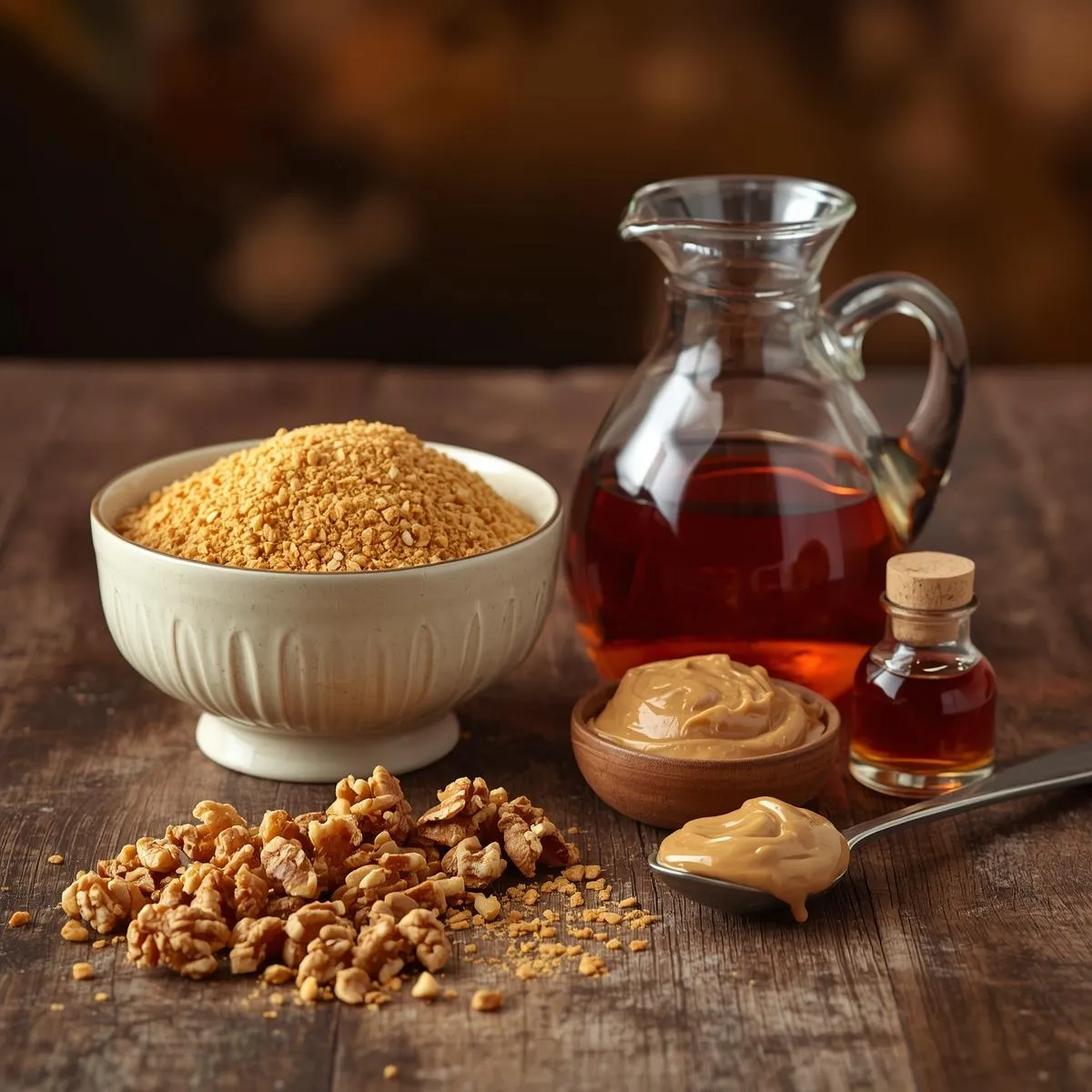 - Mix dry ingredients – In a medium bowl, combine graham cracker crumbs, chopped nuts, and a pinch of salt.