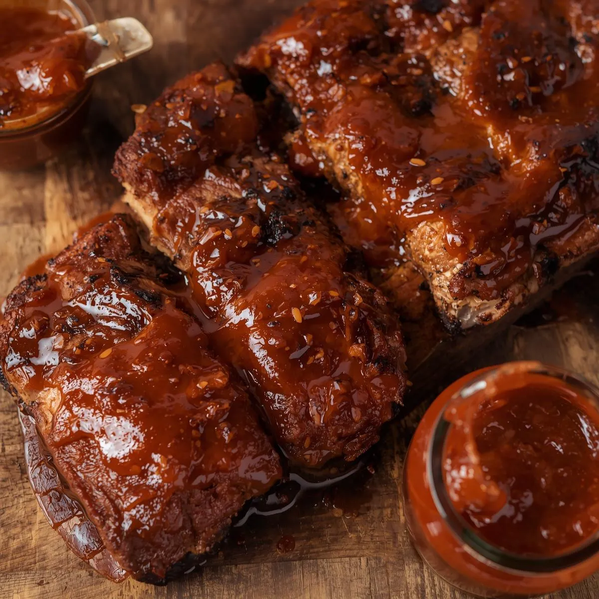 - Glazed BBQ ribs or pulled pork