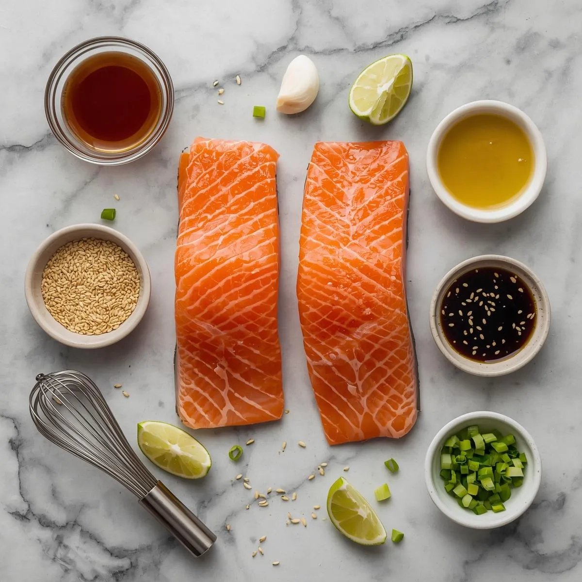 Step 1 – Make the Glaze: In a small bowl, whisk together maple syrup, soy sauce, sesame oil, garlic, ginger, and lime juice.