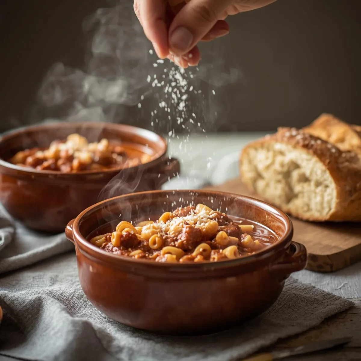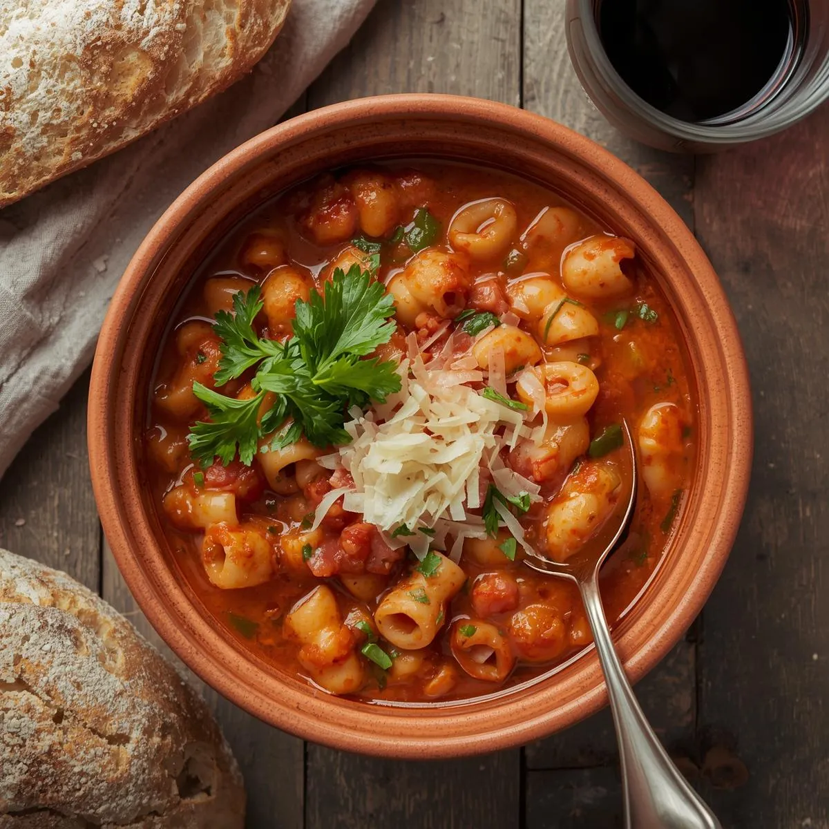 - Finish & serve – Adjust seasoning, then ladle into bowls. Garnish with fresh parsley and Parmesan.