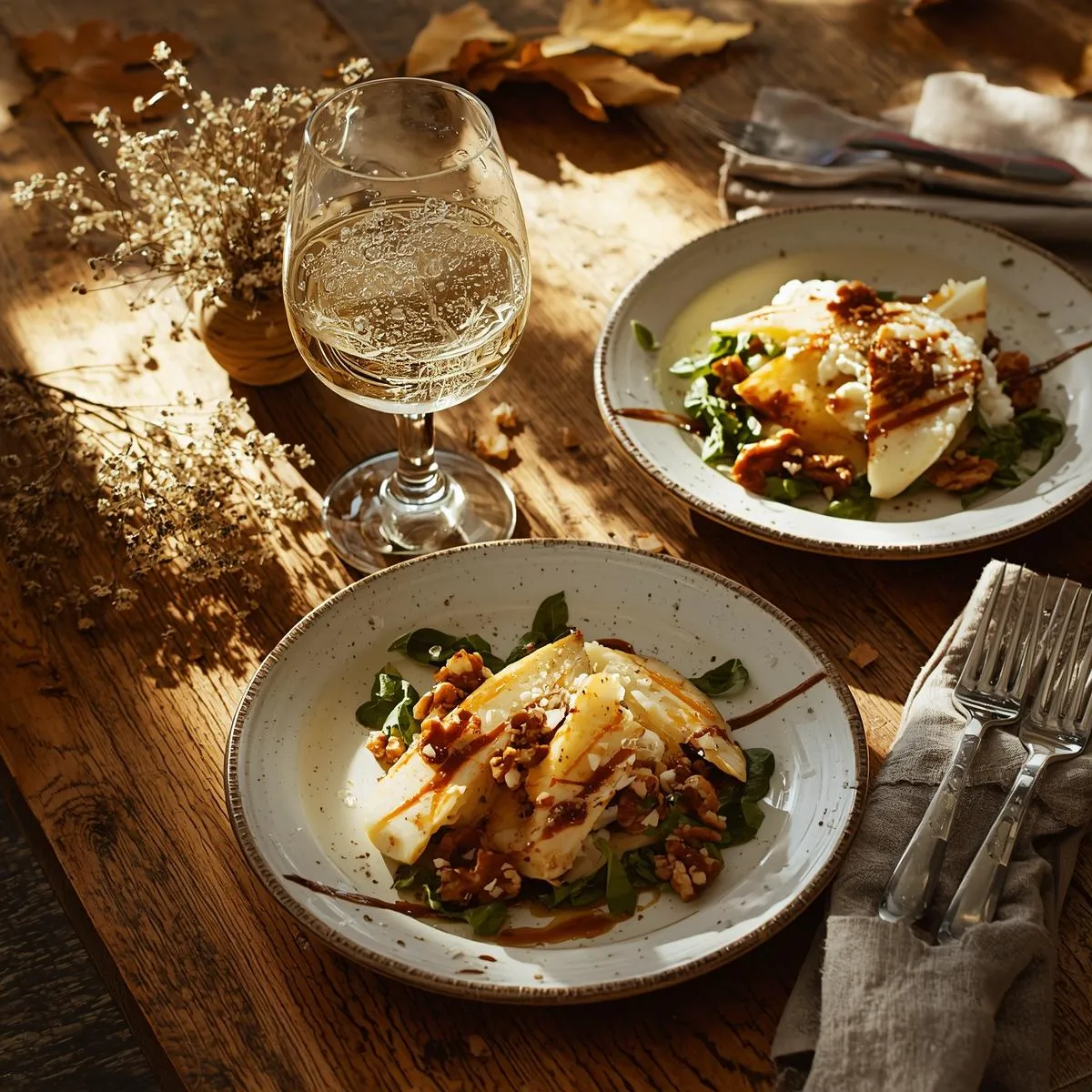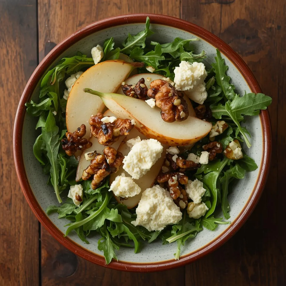 🍐 Sweet & Savory Balance: Juicy pears meet tangy goat cheese and crunchy walnuts.