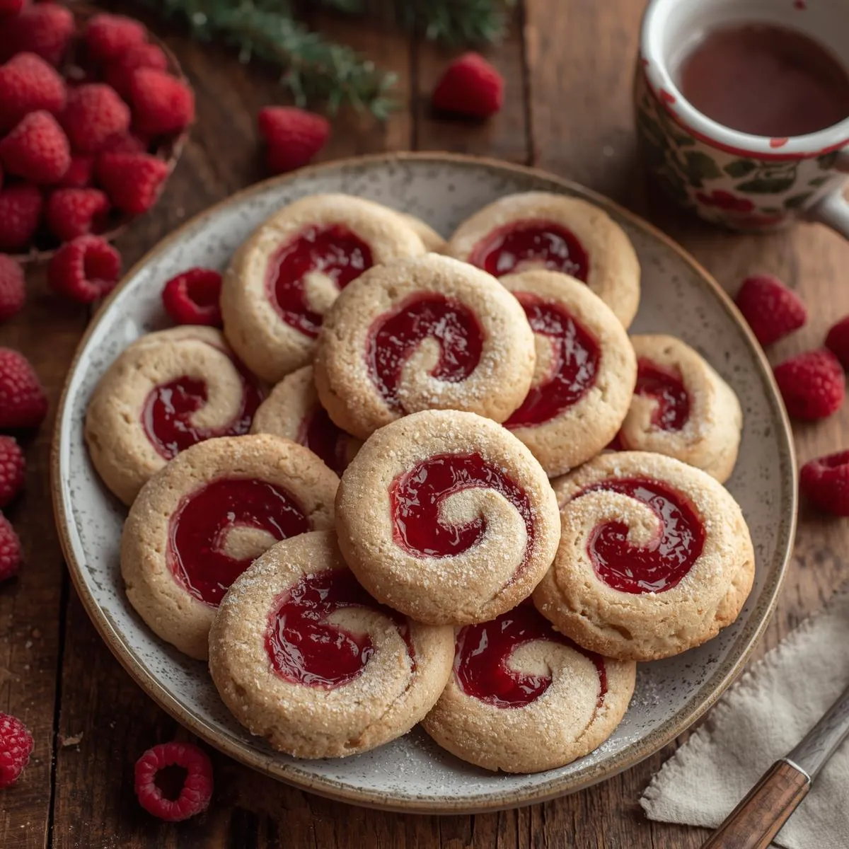 They’re delicate shortbread cookies made with a simple dough, rolled and swirled with raspberry jam, then sliced into gorgeous spirals. These cookies are buttery, fruity, and as good to look at as they are to eat.