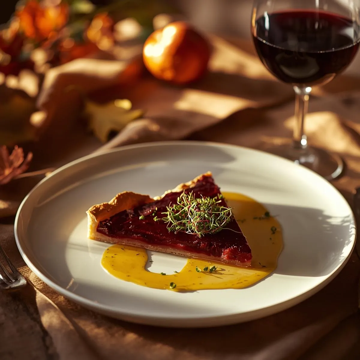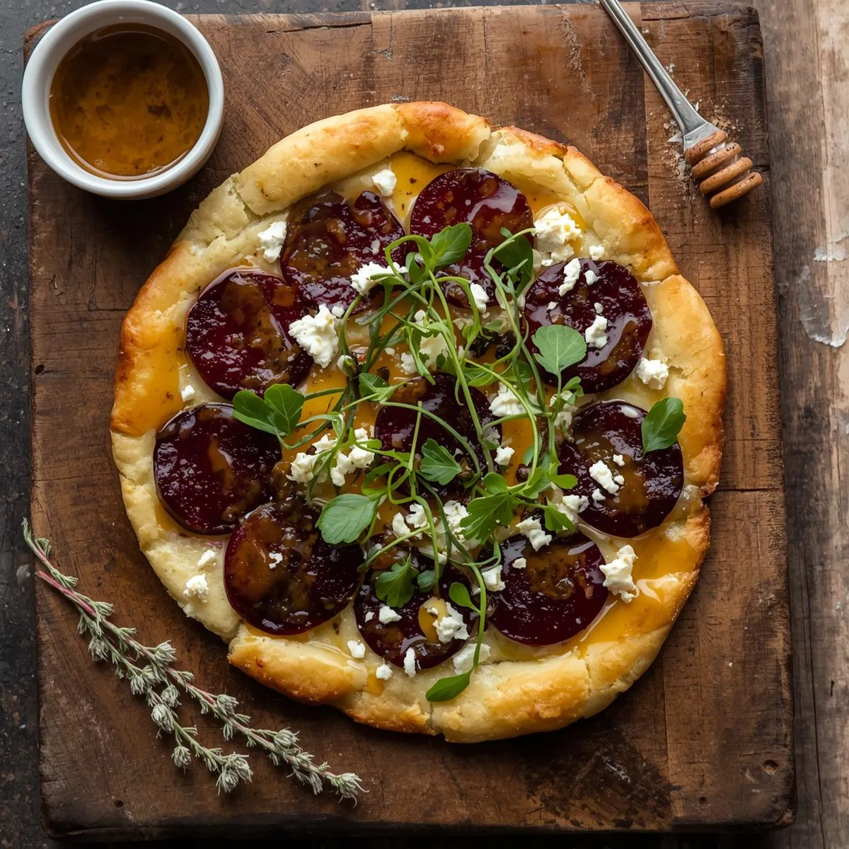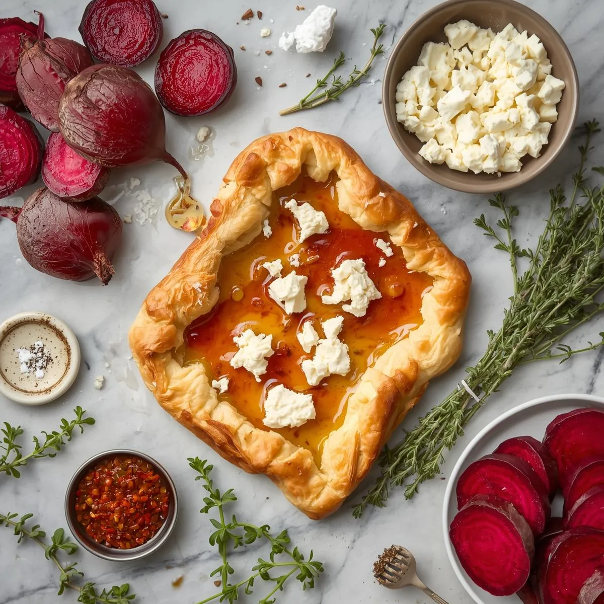 This Roasted Beet-and-Feta Tart with Honey Drizzle and Microgreens is an elegant yet simple dish that brings together sweet, earthy, tangy, and savory notes in perfect harmony. With flaky puff pastry as the base, roasted beets layered over creamy feta, and a finishing drizzle of honey, every bite feels like a warm, sophisticated celebration of seasonal flavors.