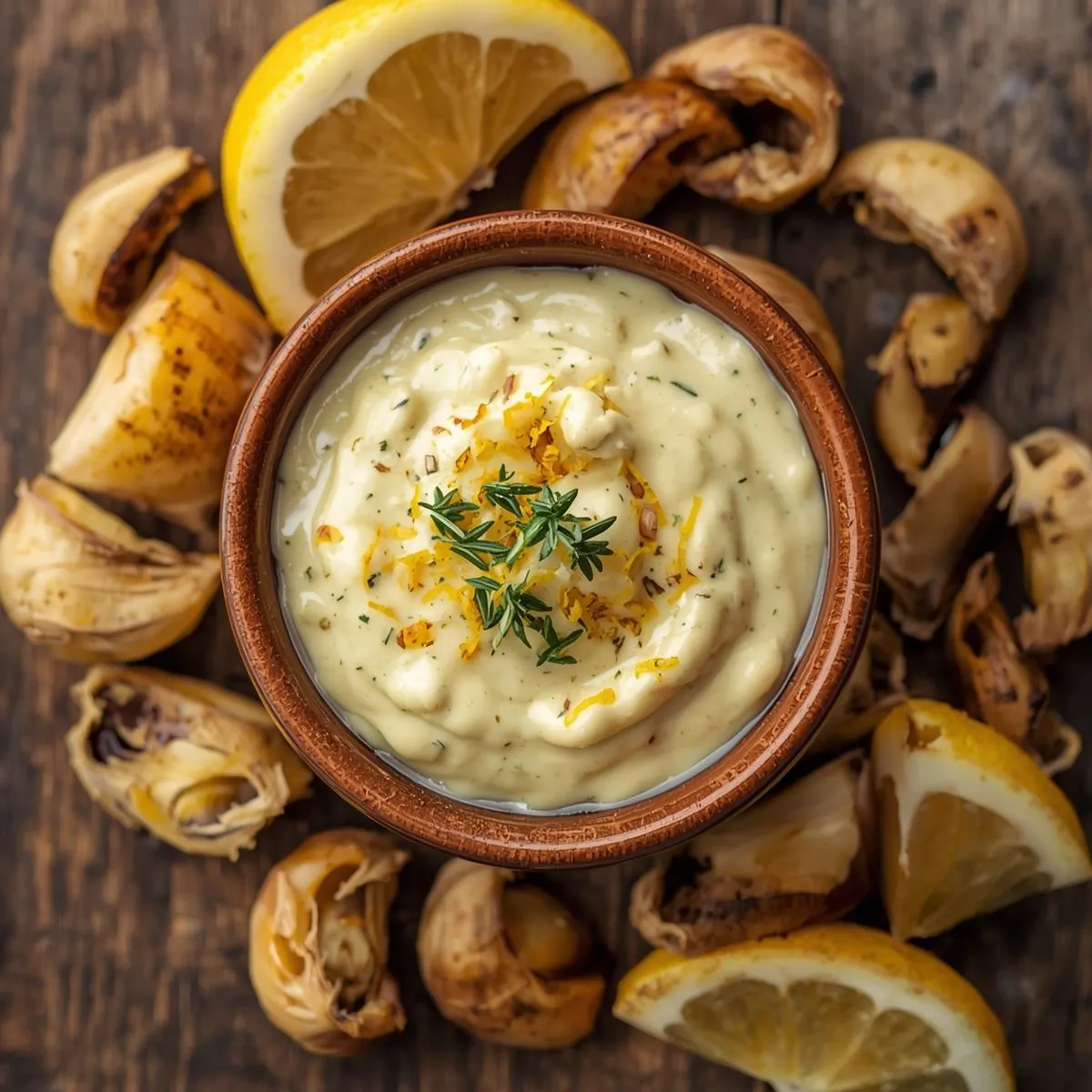 In a bowl, mash roasted garlic into a smooth paste. Add mayonnaise, Dijon mustard, lemon juice, and zest. Mix until creamy.