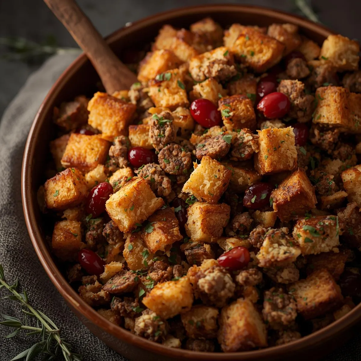 This Sourdough Stuffing with Cranberries & Sausage brings together the perfect holiday flavors — tangy bread, savory sausage, bright cranberries, and fragrant herbs. It’s festive, comforting, and guaranteed to become a treasured family favorite.