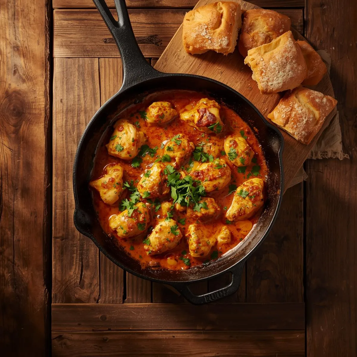 This recipe is a creative twist inspired by the famous Texas Roadhouse rolls and cinnamon butter, but turned into a savory skillet meal. Instead of curry-style butter chicken, it features garlic butter sauce, honey, and cream, coating juicy pan-seared chicken. It’s comforting, rich, and irresistible.