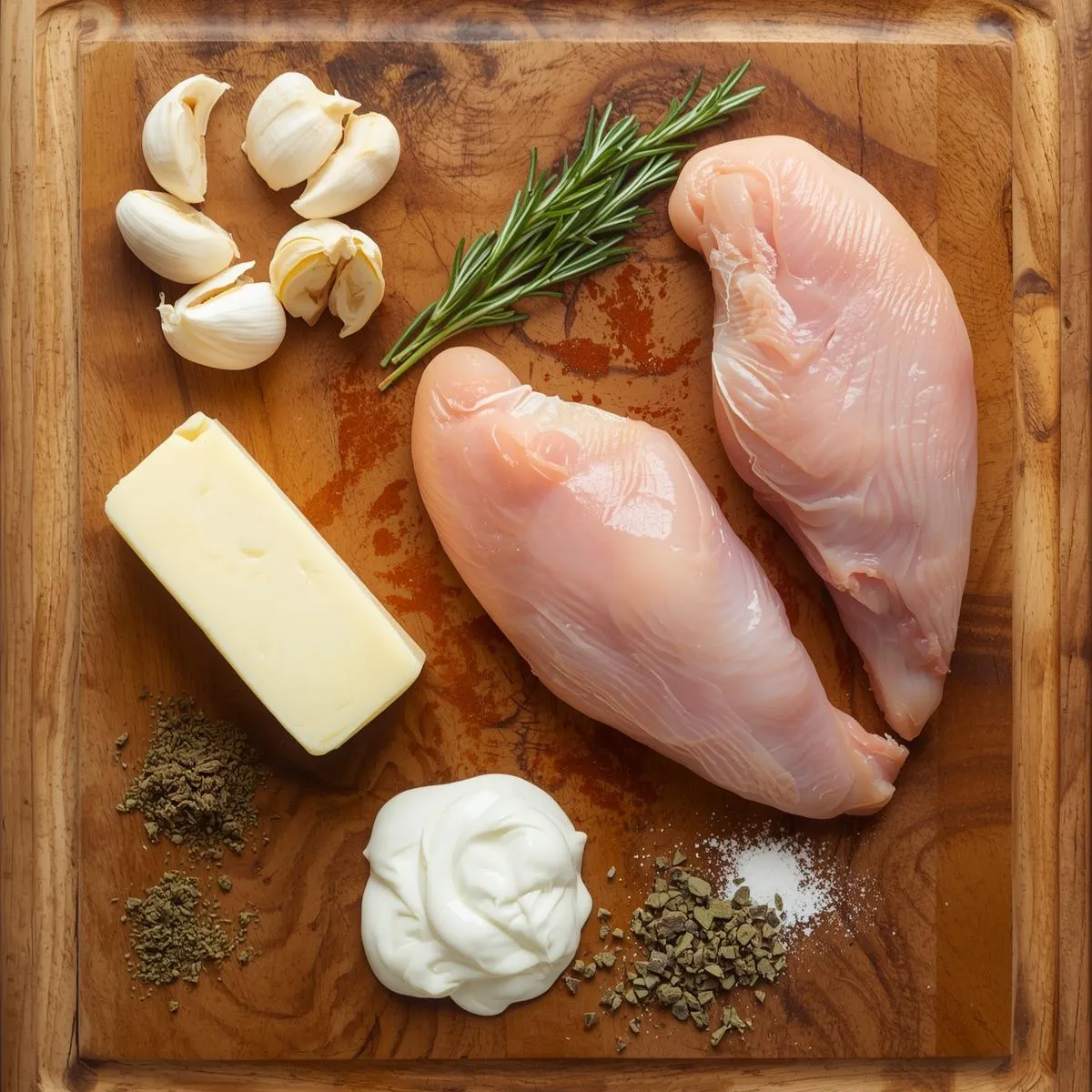 - Season & sear chicken – Pat chicken dry and season with paprika, onion powder, salt, and pepper. Heat oil + 1 tbsp butter in a skillet, then cook chicken 4–5 minutes per side until golden. Remove and set aside.