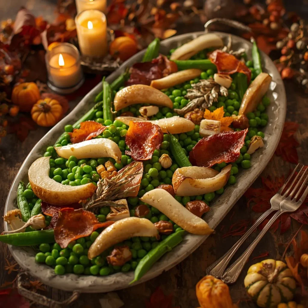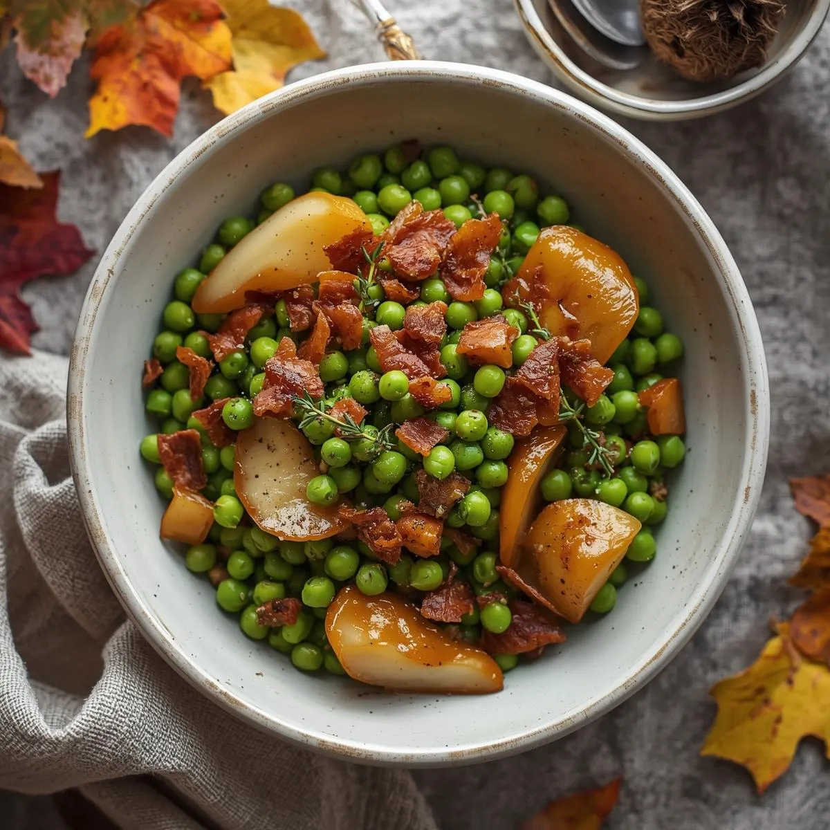 These Thanksgiving Peas with Pear and Pancetta bring a burst of flavor and color to your holiday feast. The combination of salty, sweet, and buttery goodness makes this side dish unforgettable — a refreshing upgrade to traditional peas that will have everyone asking for seconds. 🥂🍐✨