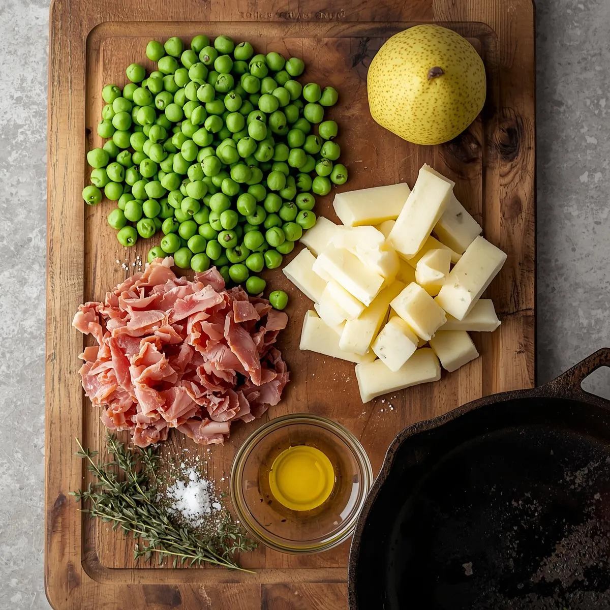 Step 3 – Add the Peas: Stir in the peas and thyme. Sauté for 3–4 minutes, just until the peas are tender and vibrant. Season with salt and black pepper.