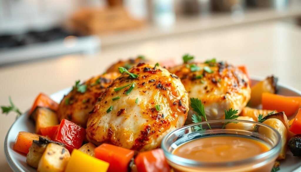 Checking out thin chicken breast recipes opens up quick meal ideas. These options are easy and support healthy eating habits. For busy nights, oven-baked and air fried chicken are perfect. They cook fast, in about 15 to 20 minutes.