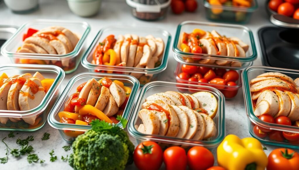 Using thin cut chicken breasts for meal prep lets you have tasty, healthy meals all week. It’s key to store cooked chicken right to keep it fresh for delicious weekday meals. You save time and have ready meals, even with a busy schedule.